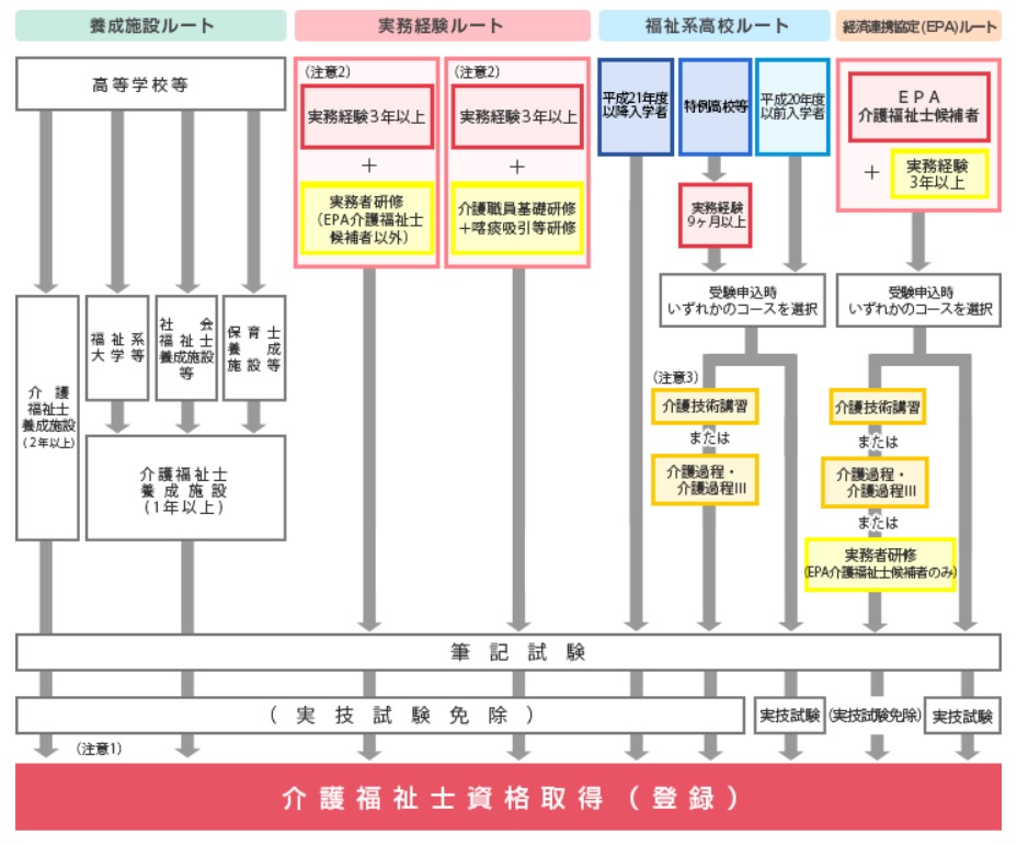 3年以上の実務経験があり、実務者研修を修了した後に国家試験に合格することで資格を取得するルート - EPA(経済連携協定)ルート