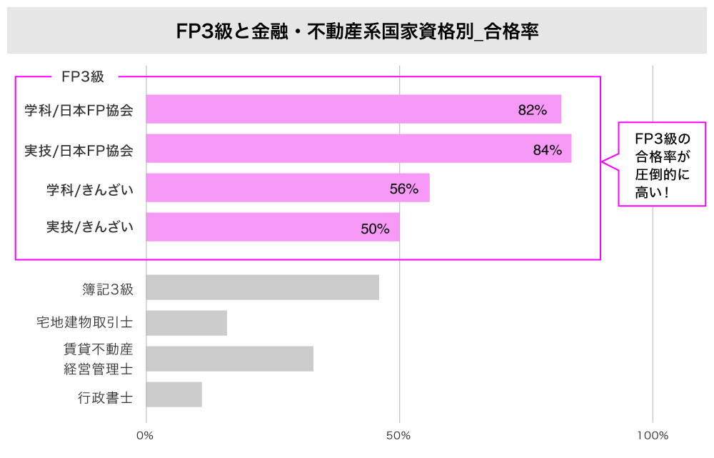 | FP3級の合格率は平均60%!他の国家資格と比較して圧倒的に高い=難易度が低い! |